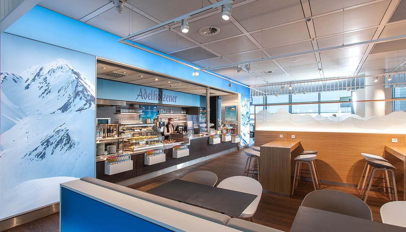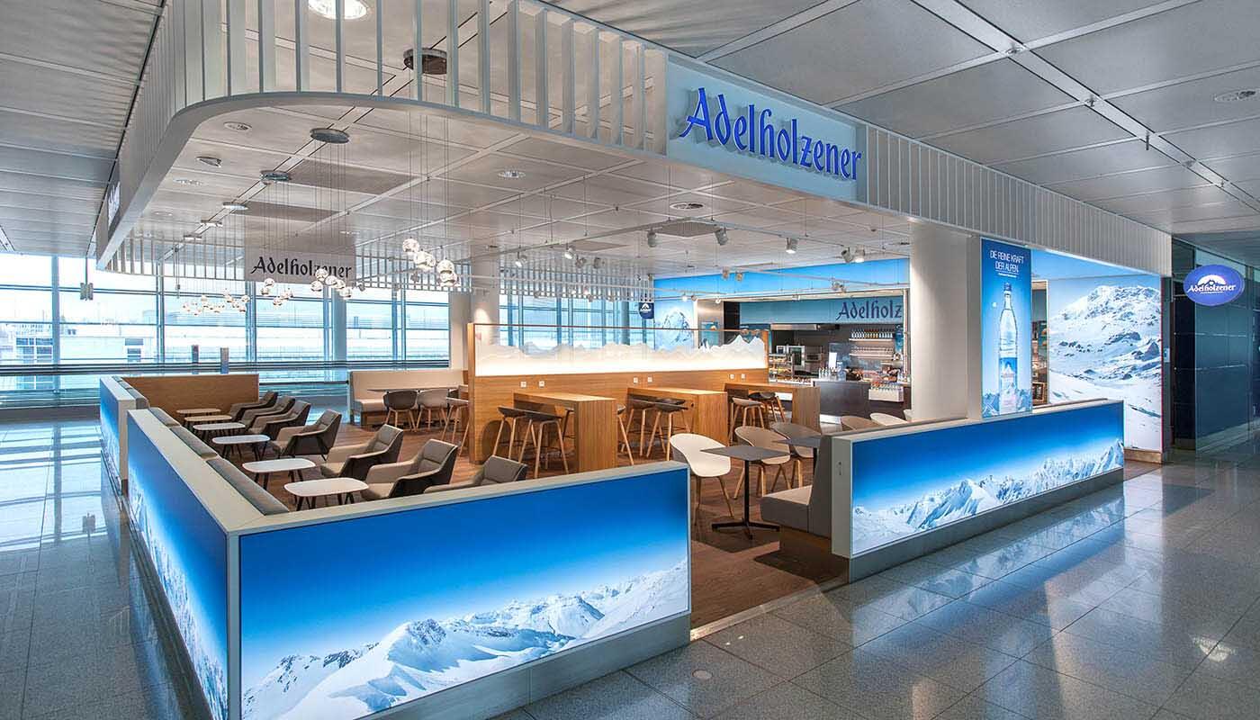 The mineral water after which this snack bar is named comes directly from the Bavarian Alps. In addition to the export hit of the highest purity, regional, freshly tapped beers and non-alcoholic hot and cold drinks also attract visitors. Passengers can also enjoy freshly prepared sandwiches and a fascinating view of the apron.