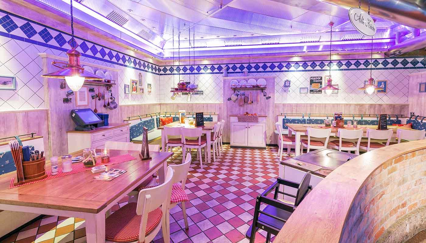 In the tavern and the adjoining covered beer garden, guests can enjoy hearty Bavarian classics such as roast pork and dumplings as well as a selection of international dishes. Airbräu also features a regular program of live entertainment, from traditional Bavarian bands to comedy acts.
