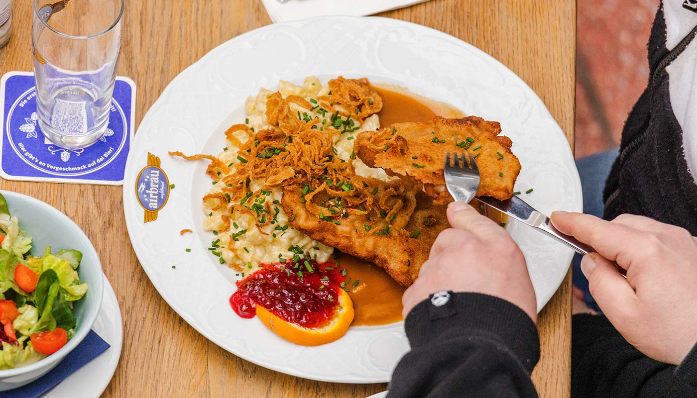 Genieße bayerische Wirtshauskultur, traditionelle Schmankerl und hausgebraute Biere aus der weltweit ersten Flughafen-Brauerei. Im Airbräu verbinden wir Brauhaus-Tradition mit internationalem Flair und vermitteln mit bayerischer Gastfreundschaft ein Gefühl von Heimat. Unsere Gerichte werden frisch zubereitet und die Zutaten aus der Region bezogen.