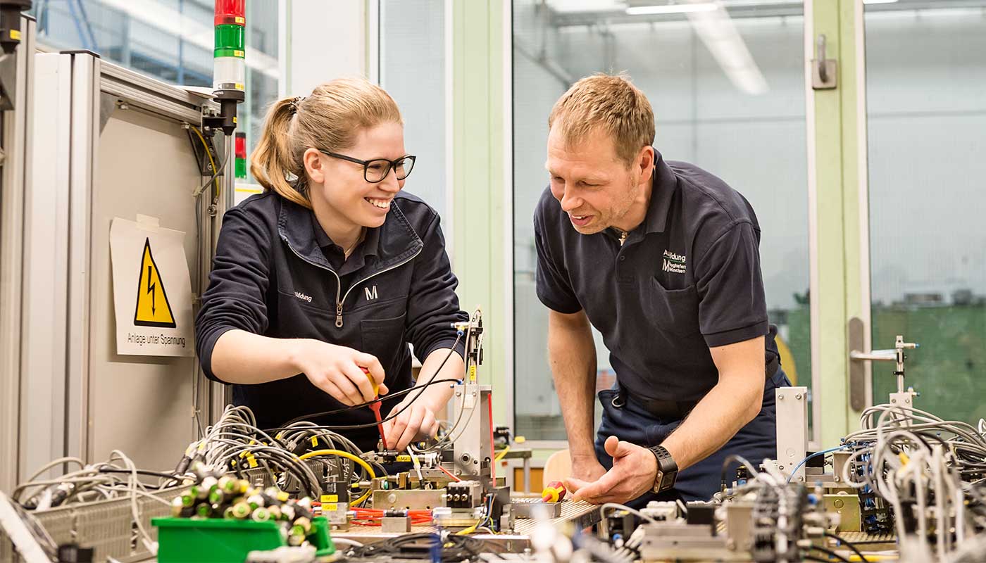 In einem der beliebtesten Ausbildungsberufe Mechatroniker/-in (w/m/d) erlernst du die erforderlichen und umfangreichen Kenntnisse in Mechanik, Elektronik und Informationstechnik. Du lernst technische Pläne zu lesen, zunächst einzelne Komponenten herzustellen, diese dann zu Systemen und Anlagen zu montieren, in Betrieb zu nehmen und die dazugehörige Software zu programmieren und zu installieren. Du bist die Fachkraft, die in der Lage ist, mit den verschiedensten technischen Systemen umzugehen und diese instand zu halten und zu reparieren. Deine Projekte steuerst du von Anfang an und begleitest sie bis zum erfolgreichen Abschluss. Zusätzlich erhältst du eine Vertiefung im Bereich mobile Serien-/Sonderfahrzeuge und -geräte.