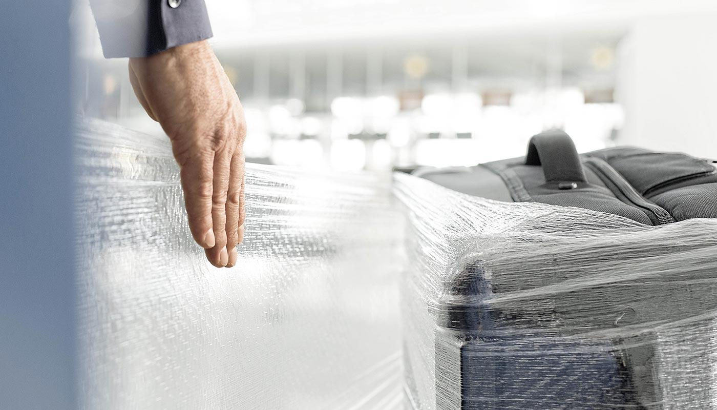 The protective foil machines are operated by the airport staff at the terminal. Please contact the nearest information desk to call the airport staff.