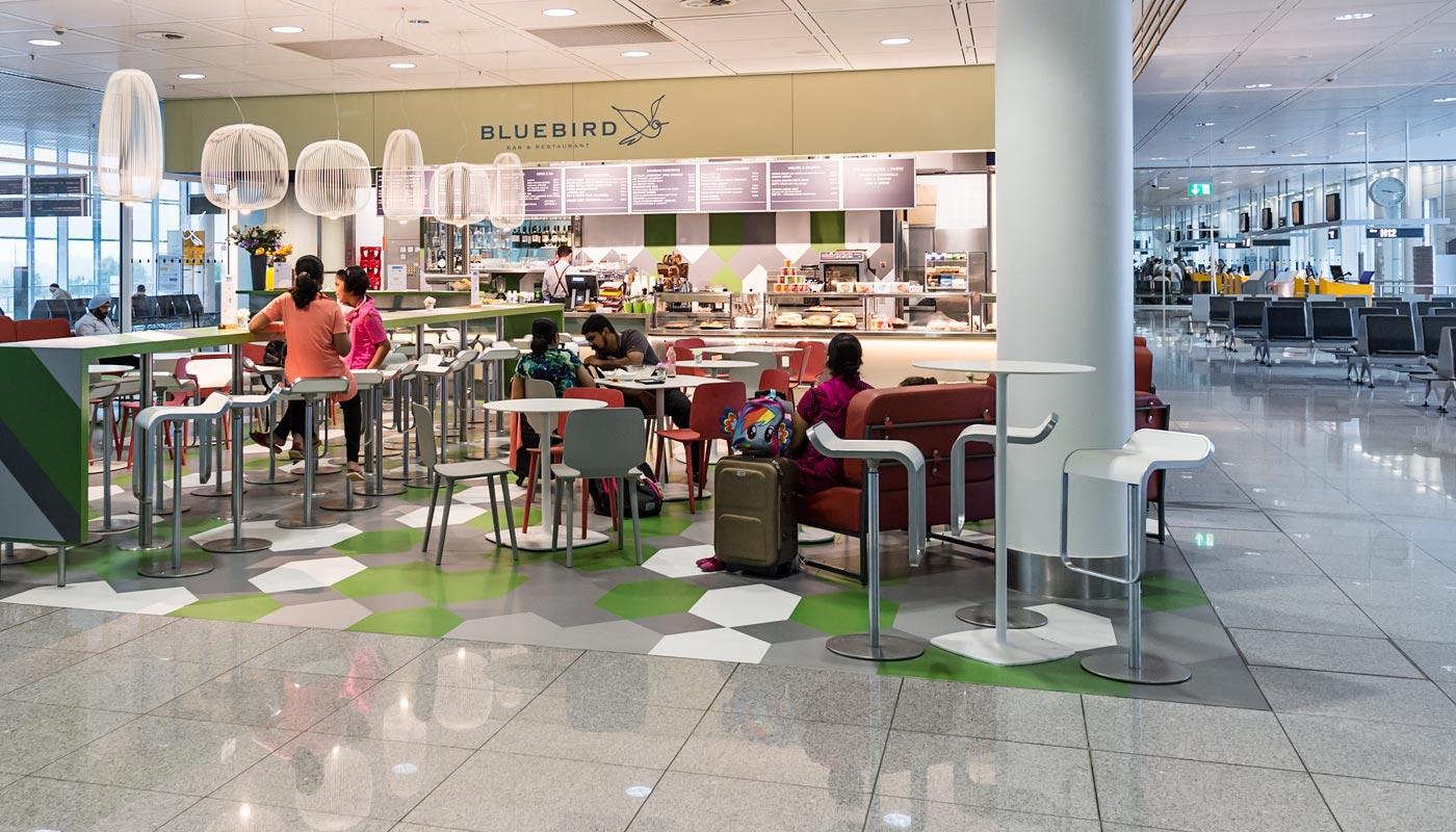 At the Bluebird Bar tasty items are available "to go" starting in the early morning hours – always good to know when you miss breakfast at home. You can pick up sandwiches, snacks and baked goods for the perfect start to your morning. Also on the menu are hearty Bavarian sausages, thin-crust Italian pizza, fine pasta, shakes and ice cream.