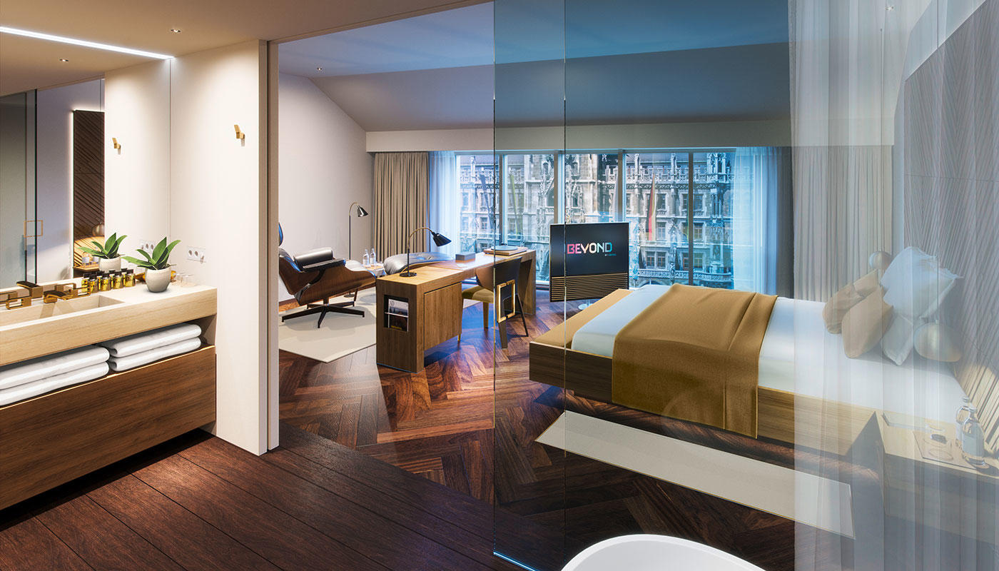 September 2017 will see the opening of the most exclusive suite in Munich in a prominent location on Marienplatz under the name BEYOND by Geisel. A luxurious city residence, where guests will be looked after by host Victoria Wagenheimer and her team on a highly individual level so they will feel entirely at home on their very first visit. The 19 luxuriously furnished bedrooms and suites extend around the open living room which is set over two floors.