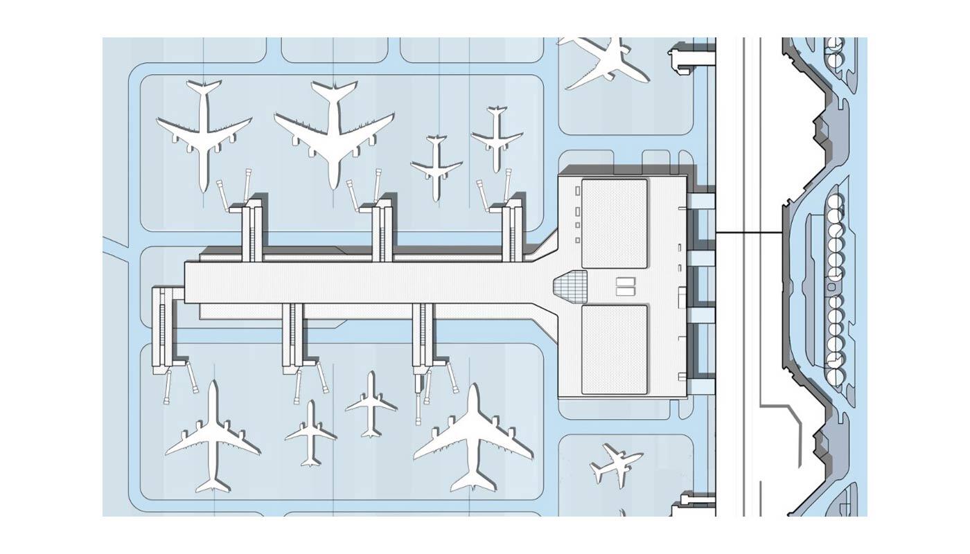 On the AirSite West site, new buildings at the future LabCampus innovation center are going up. For access to the site, a new transportation node has been developed. At the center of the airport, a new Terminal 1 Pier is being built. In addition, the airport is expanding its parking facilities.