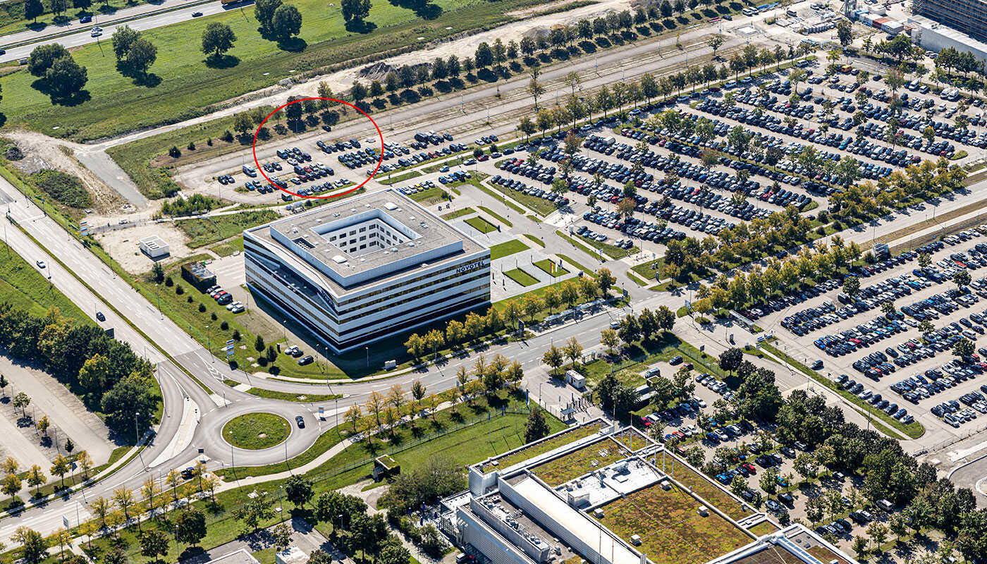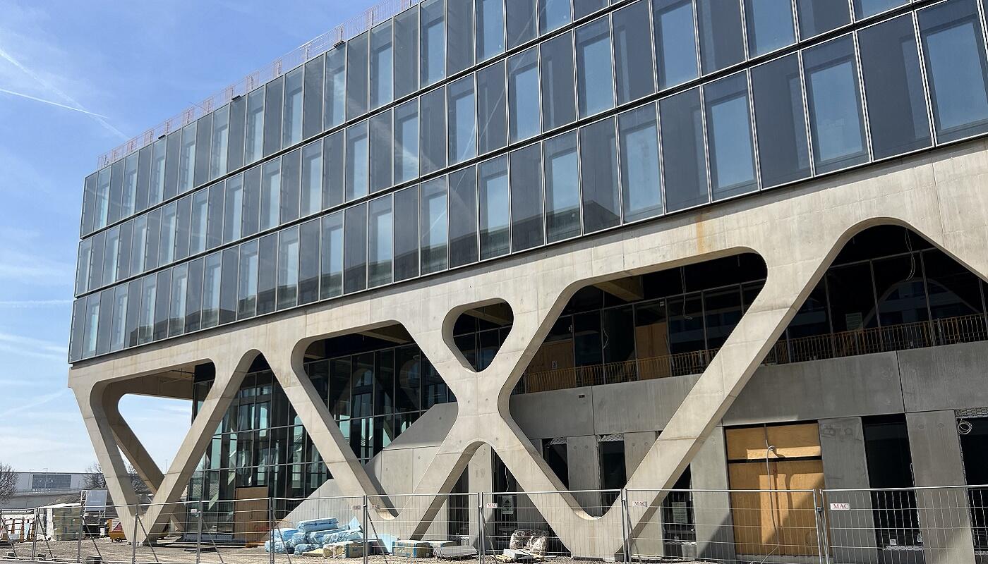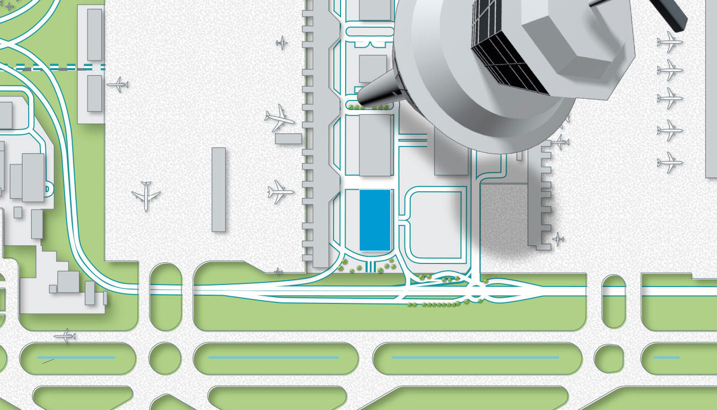 On the AirSite West site, new buildings at the future LabCampus innovation center are going up. For access to the site, a new transportation node has been developed. At the center of the airport, a new pier for Terminal 1 is being built. In addition, the airport is expanding its parking facilities.