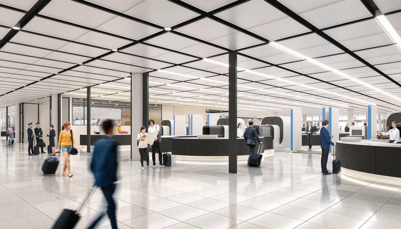 • 2023: Interior work begins. Conversion work begins in Module B of Terminal 1 to connect the expansion to the existing building