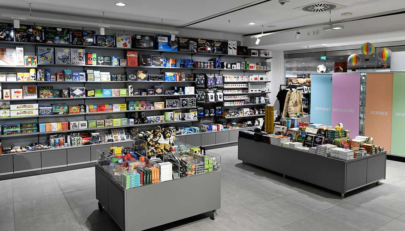 The Deutsches Museum shop has an extensive range of media, toys, games and models for science and technology fans of all ages. It features a wide selection of products related to physics, natural sciences and model-building. From books and postcards to models and accessories, the shop offers a one-of-a-kind shopping experience. Especially outstanding is the range of games, models and books for children – the scientists of the future. It is never too early to start!