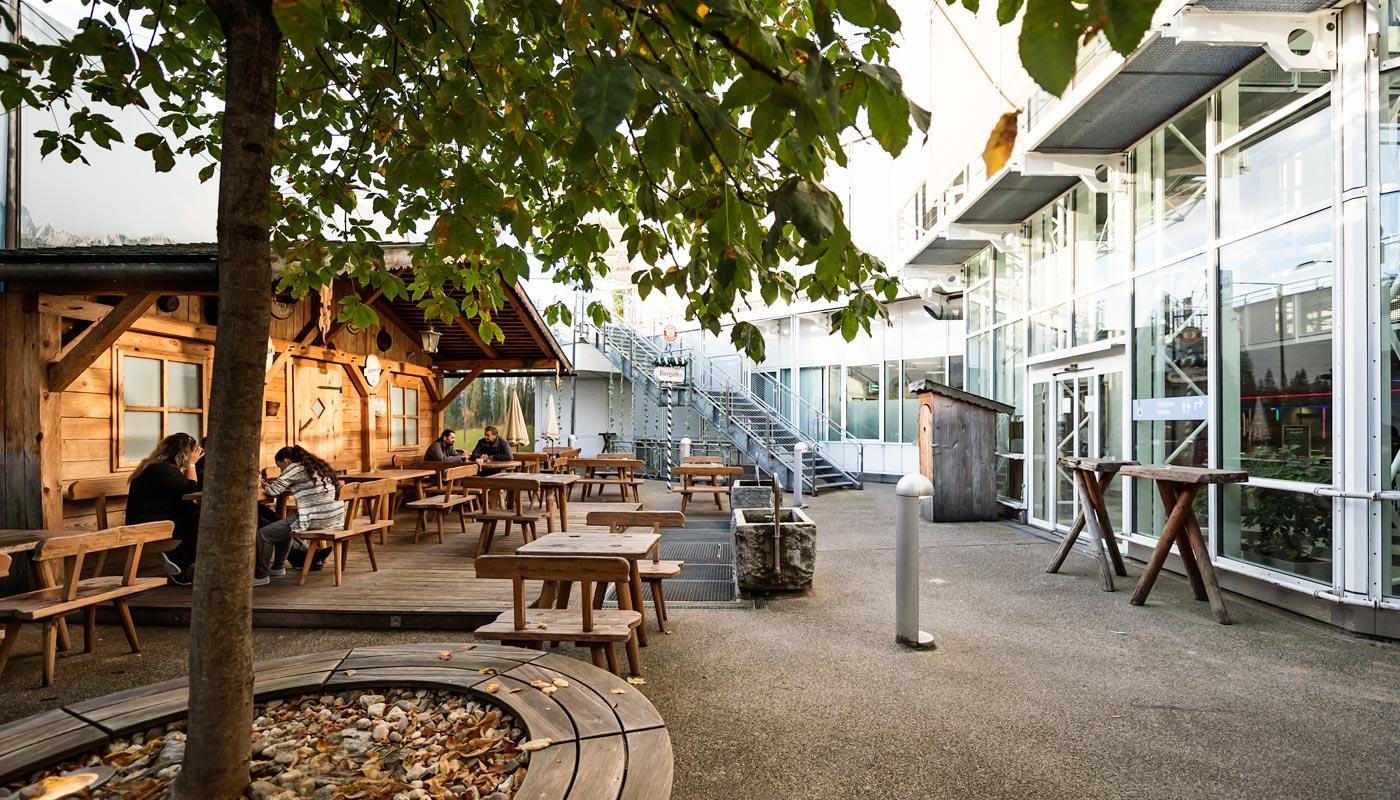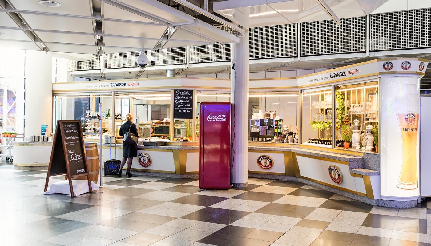 The beer garden of the Erdinger Bar features all-wood decor and serves the full range of beers from the brewery in nearby Erding from which it takes its name. To complement the traditional Bavarian brews, guests can choose from a full menu of regional specialties such as white sausages, wieners and leberkäse with bread pretzels and fresh potato salad.