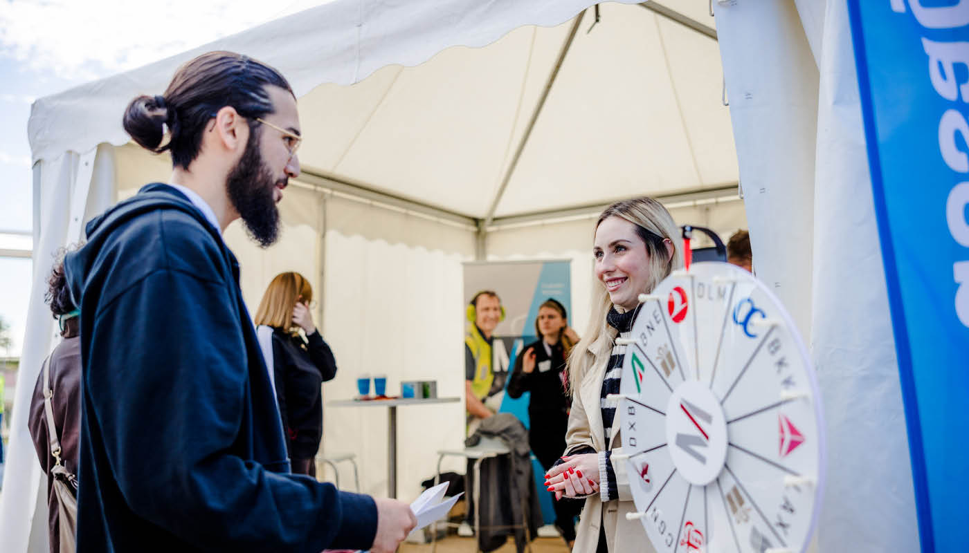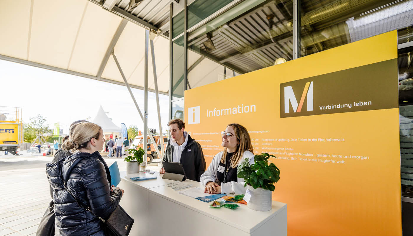 Gute Gespräche, großes Interesse: Beim Karrieretag am 21. Oktober im Besucherpark kamen rund 3.000 potenzielle Bewerberinnen und Bewerber, um sich über die vielfältigen Jobmöglichkeiten bei uns im Flughafen München Konzern zu informieren.