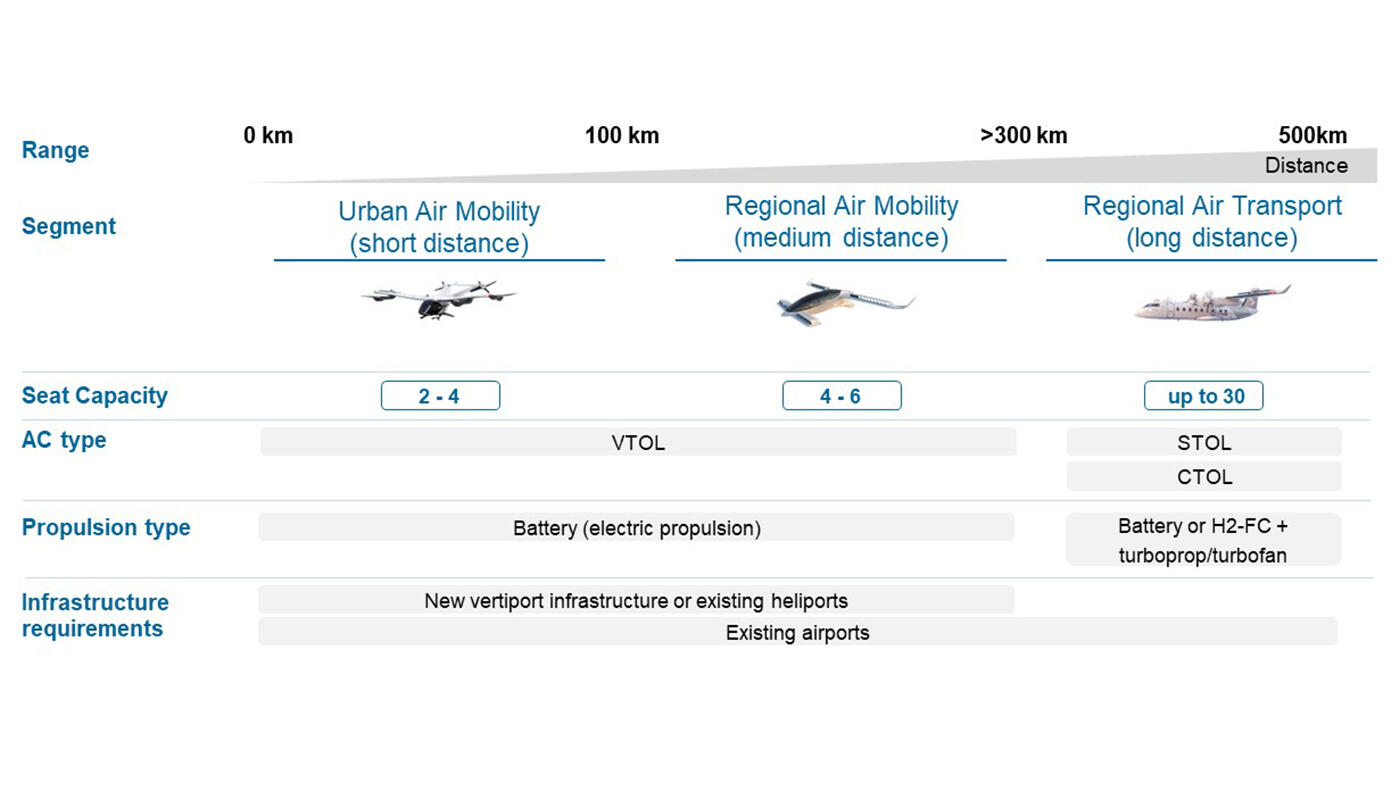 Advanced Air Mobility (AAM) encompasses a variety of highly automated and electrically powered aircraft, described by concepts such as eVTOL (Electric Vertical Takeoff and Landing Aircraft), eCTOL (Electric Conventional Takeoff and Landing Aircraft) and eSTOL (Electric Short Takeoff and Landing Aircraft), each designed for specific use cases in area of urban and regional air mobility and regional air transport.