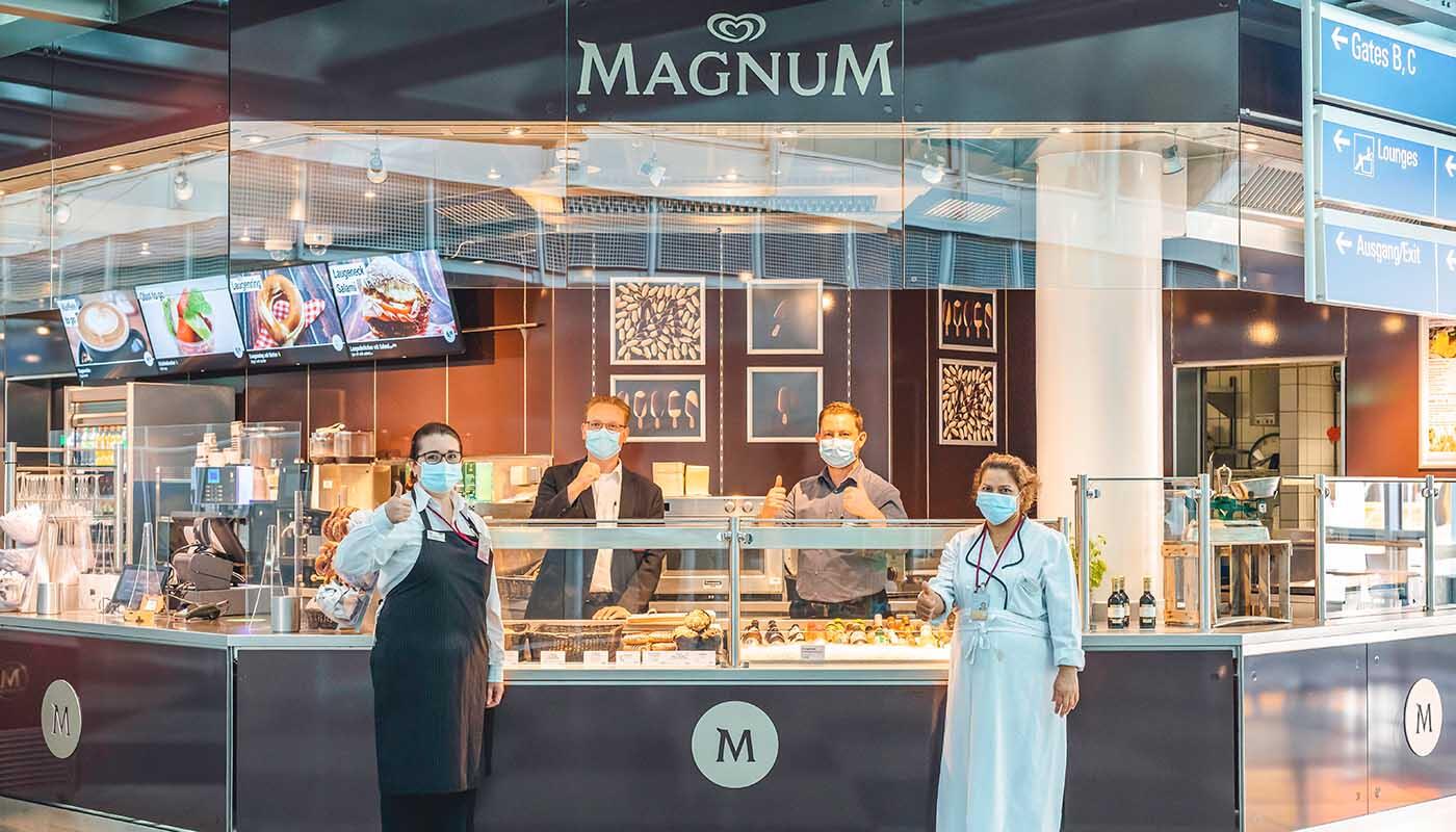Naturally a café named after Germany's much-loved ice cream maker has plenty of cold and creamy treats on the menu – but that's not all. There are also salads, hearty meals and cakes. Guests at Magnum Gate can choose from among coffee specialties, refreshing drinks and regional beers. And the view of the action on the airport apron is like a free topping on the ice cream sundae.
