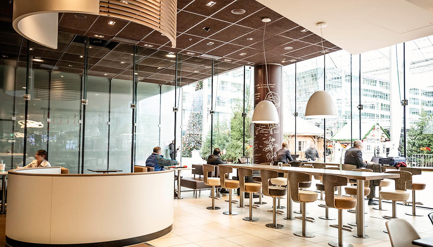 The McDonald's Restaurant has everything our airport guests could desire: attractive, round-the-clock opening times, an integrated McCafé with a relaxed lounge atmosphere, the business zone and attractive breakfast options.
