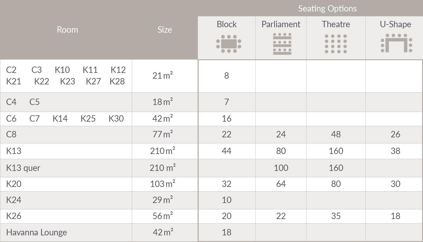 All meeting rooms are light-flooded and the windows can be opened for regular ventilation. All rooms can be darkened with blackout blinds. Each room is thoroughly aired before an occupancy and all surfaces, handle areas and critical areas are disinfected for you. All rooms are set up according to the current hygiene requirements and drinks are set for you at every seat.