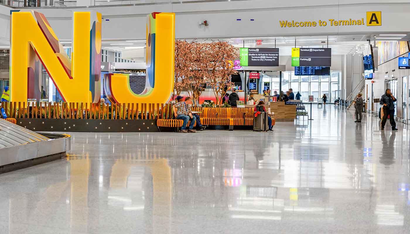 During the 3-day Skytrax audit, Terminal A was lauded for its exceptional customer experience offerings. Notable highlights include user-friendly wayfinding and dynamic TSA signage providing queue wait times, a diverse range of top-notch facilities, attractive seating with ample charging options, innovative security screening allowing liquids and electronics to stay in carry-on bags, and a rich selection of local food and retail outlets. Furthermore, Terminal A incorporates digital signage such as the “Digital Journey of Surprises” at key touchpoints throughout the terminal, showcasing the iconic spirit of New Jersey’s people, landmarks, and innovations. The terminal also features a digital Welcome Banner that highlights local art, notable New Jersey Hall of Fame inductees, and must-see venues across the state, creating a sense of place for travelers. A striking "Forest of Firsts", comprised of eight towering LED pillars, honoring the state's innovative spirit further enhances the overall passenger experience in Terminal A.