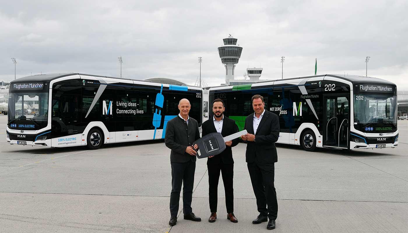 Ein weiterer Schritt in Richtung "Net Zero 2035", der Nachhaltigkeitsstrategie der Flughafen München GmbH (FMG), ist getan: MAN Truck & Bus Deutschland hat die ersten zehn elektrischen Solo-Passagierbusse an die AeroGround Flughafen München GmbH, eine hundertprozentige Tochter der FMG, ausgeliefert. Weitere 27 Elektrobusse der Modelle MAN Lion‘s City E 12 und E 18 werden bis Ende des Jahres in Betrieb genommen. Es besteht eine Option auf 25 weitere Busse.