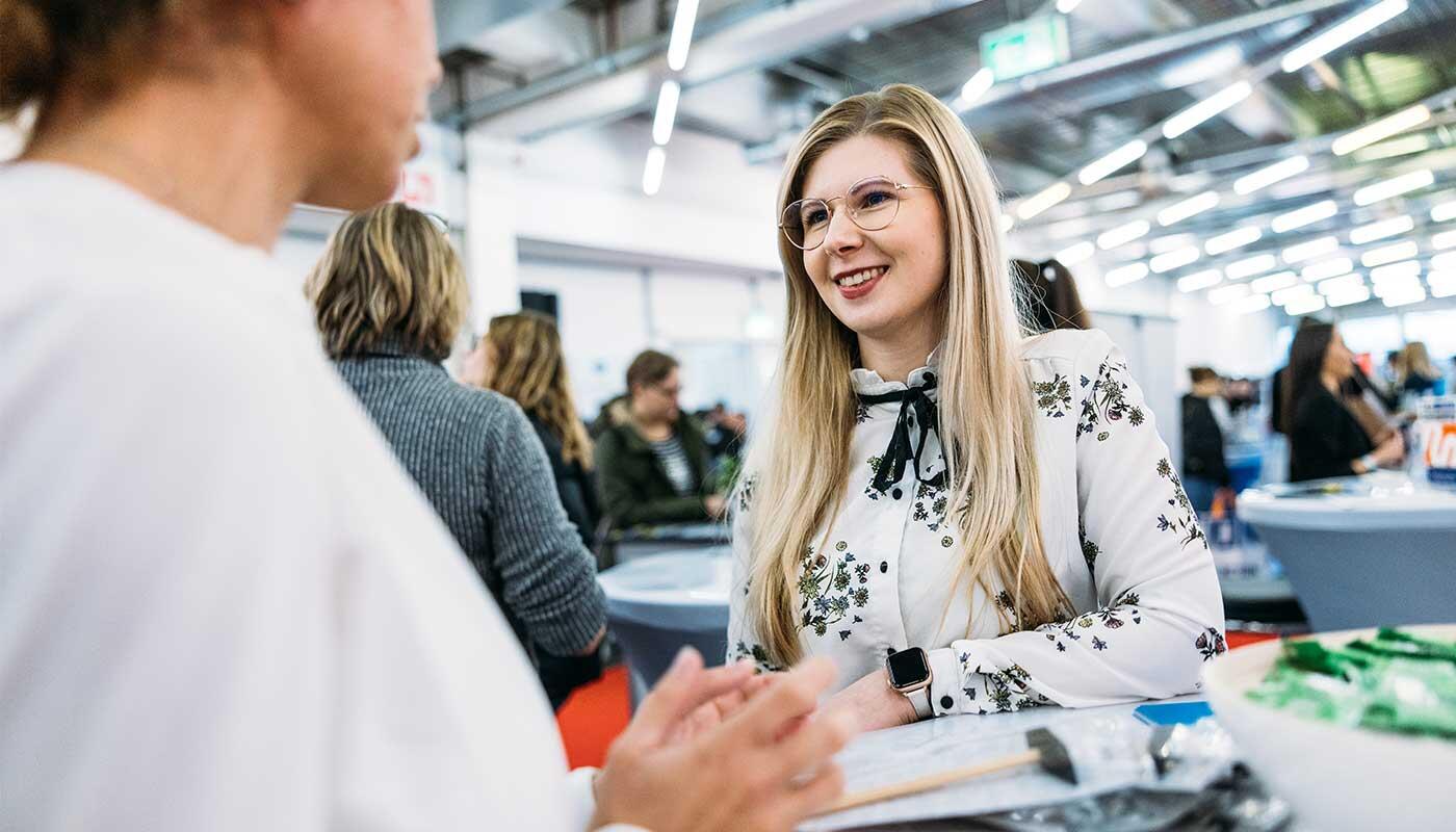 Die FMG ist mit einem Stand direkt im Eingangsbereich der Jobmesse vertreten. Unter dem Motto "Ein Arbeitgeber. Grenzenlose Jobvielfalt" stehen 20 Kolleginnen und Kollegen für Fragen zu allen Job- und Ausbildungsmöglichkeiten zur Verfügung. Ob Fachkraft, Führungskraft, Quereinsteigende, Studierende oder Schülerinnen und Schüler, die Jobmesse bietet die Gelegenheit, die vielfältige Arbeitswelt am Flughafen kennenzulernen. Der Airport bietet zahlreiche Karrierewege, unter anderem als Elektroingenieurin, IT-Experte, Werkfeuerwehrfrau/-mann, Flugzeugabfertiger, Ramp Agentin, Filialleitung oder Controller.