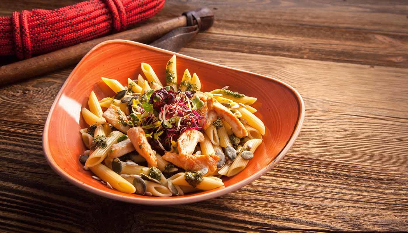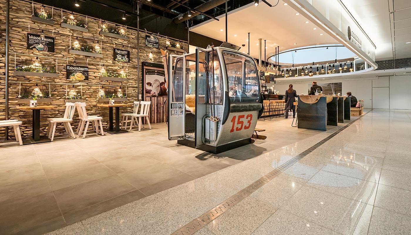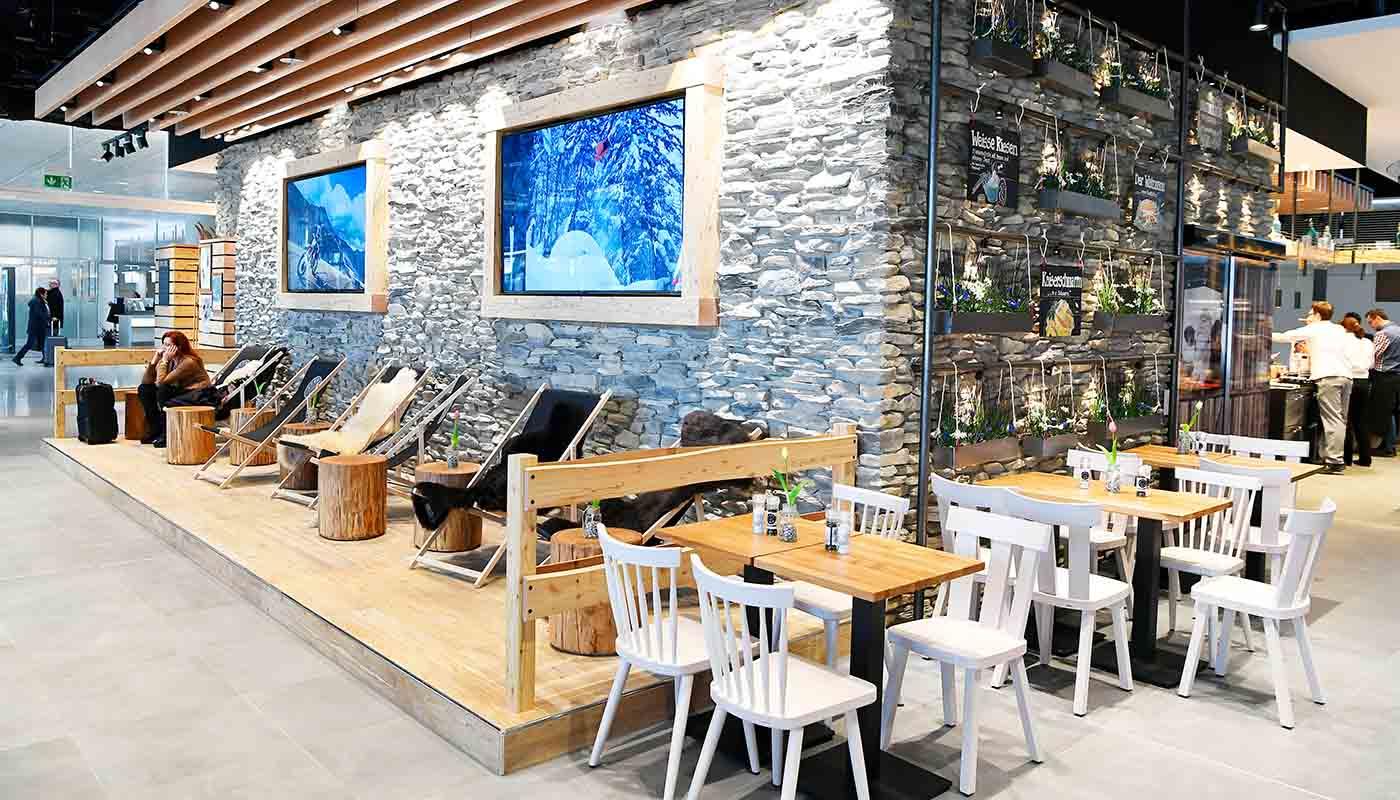 The menu has something for everyone – from traditional specialties to classical pasta dishes and a selection of salads and sandwiches. Healthy variety, hearty meals and quick take-out options: Sportalm has it all.