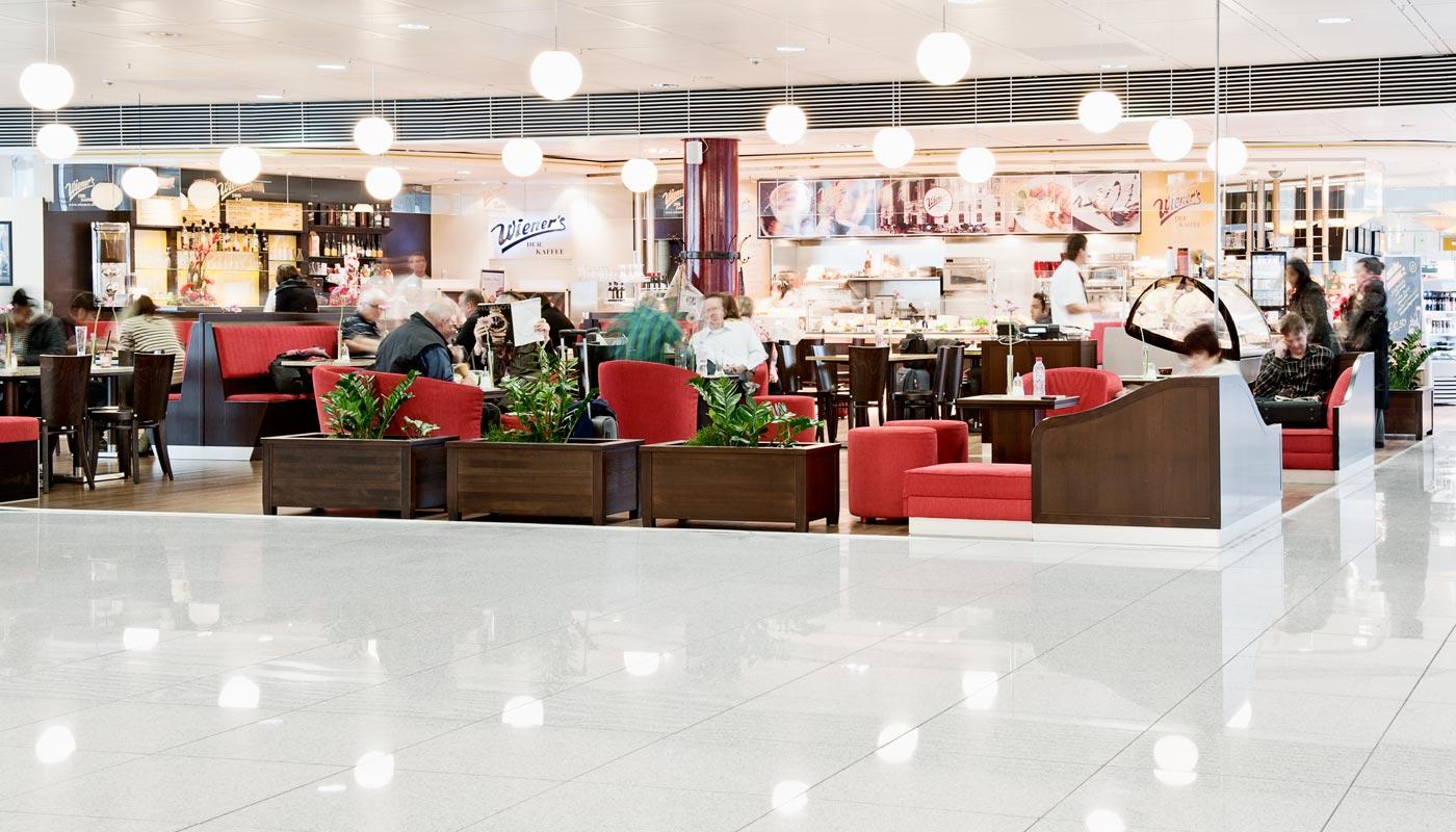 The Wiener´s coffee house embodies Austrian lifestyle. Enjoy an authentic Vienna melange coffee and a slice of decadent cake. At the bar you can order coffee specialties, soft drinks or a glass of champagne. There is also a wide selection of hot and cold dishes, from tasty sandwiches and hearty meals to Austrian desserts. Sit back, relax, and watch the busy life of the airport go by. You'll find that your flight is called much too soon.